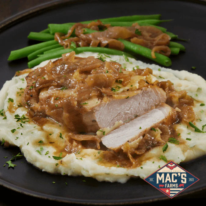 Two center cut Berkshire bone-in chops totaling around 1.5 plus pounds. Delicious!